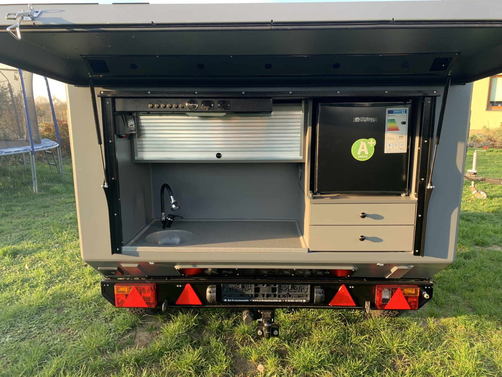 Plánujete návštěvu festivalu nebo individuální krátký výlet? Pak je pro vás tento stylový mini kempingový přívěs ideální. Díky kompaktním rozměrům stále najdete parkovací místo i ve stísněných prostorech. Ve standardní verzi má interiér prostor pro dvě osoby, dostatek úložného prostoru pro vaše zavazadla a integrovanou polici na vaření. Pro ještě větší pohodlí si vyberte to správné speciální vybavení pro vaše potřeby.